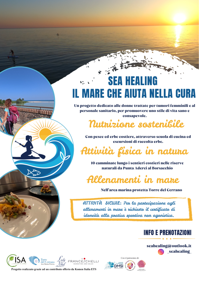 Il progetto, che è realizzato grazie ad un contributo offerto da “Susan G. Komen” Italia ETS, ha l’obiettivo di promuovere uno stile di vita sano e consapevole, nelle donne trattate per tumori tipicamente femminili e nel personale sanitario, attraverso l’adozione di una nutrizione sostenibile basata su pesce e erbe costiere e sulla pratica regolare di esercizio fisico in ambiente naturale marino.